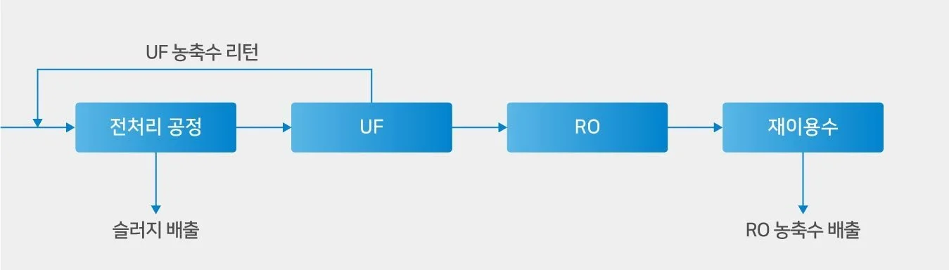 오일폐수의 경우 분리막 공정에 심각한 막힘 현상을 유발시키는 유분 제거가 가장 중요한 과제다. 따라서 재이용을 위해서는 UF+RO공정이 안정적으로 운영될 수 있도록 유분과 SS물질을 거의 100% 제거하는 높은 수준의 전처리가 필수적이다.