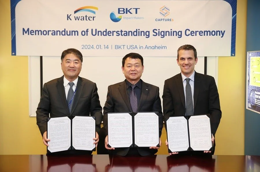 부강테크는 지난 1월 14일, 미국 자회사 Tomorrow Water가 소재한 캘리포니아주 애너하임에서 한국수자원공사(K-water, 사장 윤석대), 캡처6(Capture6, CEO 에단 코헨-콜)와 함께 해수담수화 K-테스트베드 구축을 위한 업무협약을 체결했다.