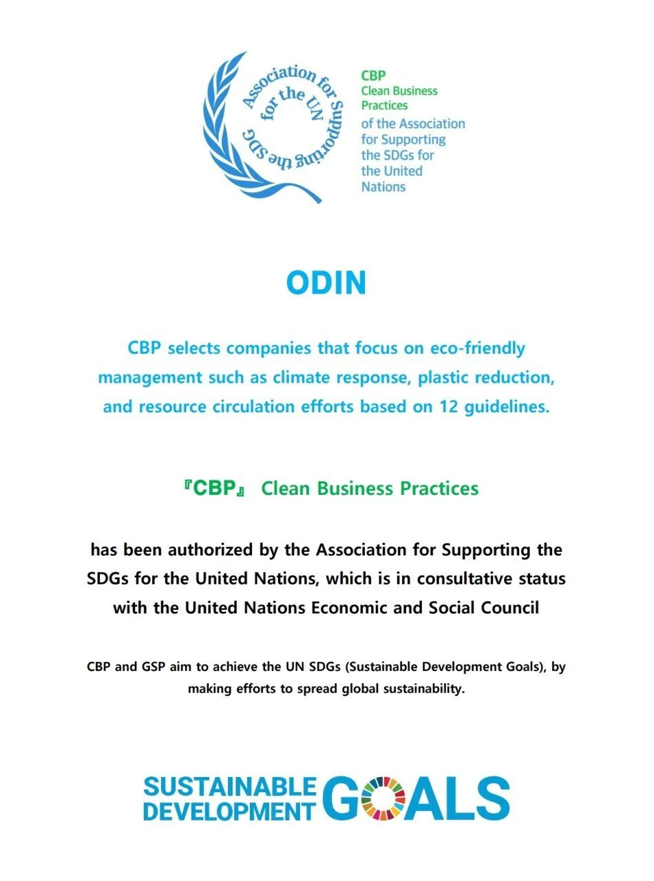오딘은 앞으로 UN SDGs 협회의 회원사들에게 지속가능성 우수제품으로 선정되어 추천될 예정이다.